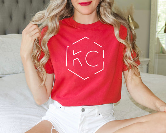 Pick Design Color Unique Modern Hexagon KC | Kansas City Sweatshirt or T-Shirt | Made here in KC! | Perfect for Game Day! | Soft Tee!