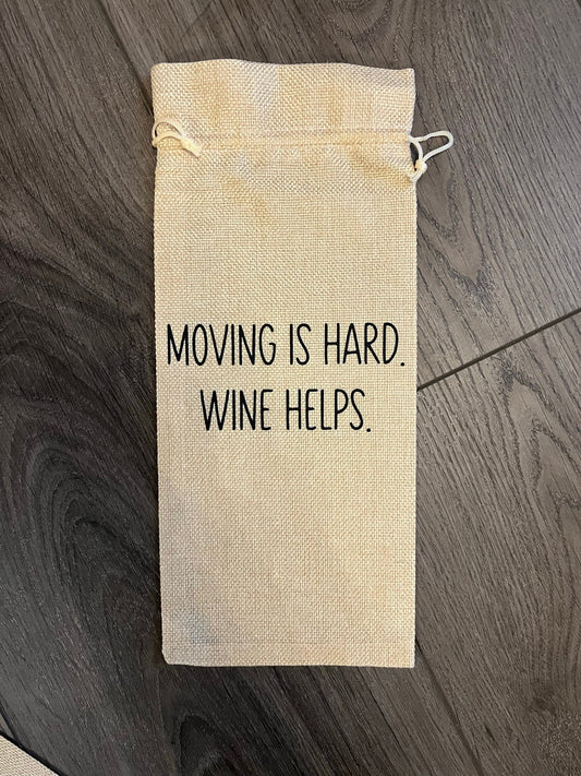 Moving is hard. Wine helps. Custom wine gift bags for realtors | closing gift housewarming buyers sellers | pairs well with new home welcome