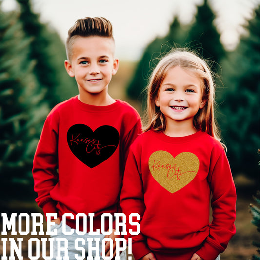 Regular price From $17.55Regular priceUnit price / perSale price From $17.55Kids Heart Kansas City Red Sweatshirt Long & Short Sleeve T-Shirt | Perfect for Game Day! | Soft!