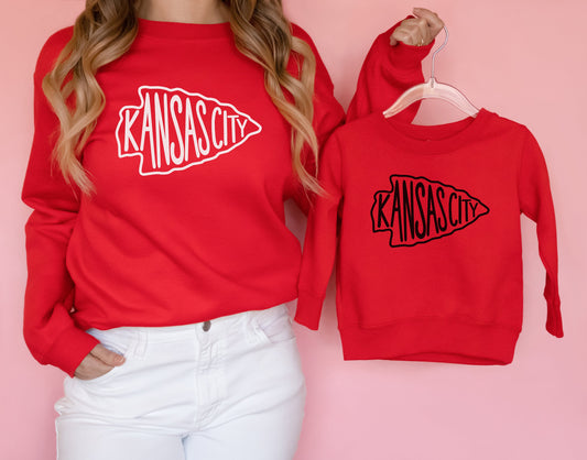 Kids & Mommy Kansas City Arrowhead Red Sweatshirt | Perfect for Game Day! | Soft!