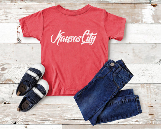 Regular price From $19.00Regular priceUnit price / per$0.00Sale price From $19.00Kids Youth Kansas City Modern Cursive | Red Sweatshirt Long & Short Sleeve T-Shirt | Soft, ethical, and sustainable!