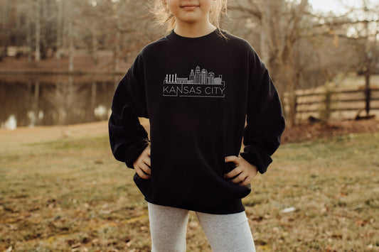 Regular price From $19.00Regular priceUnit price / per$0.00Sale price From $19.00Kansas City Modern Skyline | | Kids Infant Kids Black Sweatshirt Long & Short Sleeve T-Shirt | Youth | Soft!