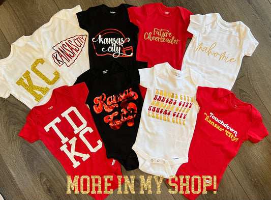 Regular price $23.50Regular priceUnit price / perSale price $23.50Kansas City Retro Dress Baby Infant | Baby Shower gift | bodysuit | Cheerleader | Football !