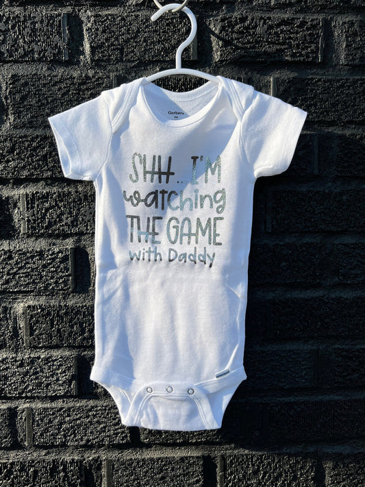 Shh.. I'm Watching the Game With Daddy | Gerber ONESIE® brand unisex 0-3, 6-9, 3-6 months baby bodysuit KC Kansas City Football
