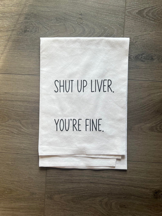 shut up liver you're fine kitchen towel cute funny drinking