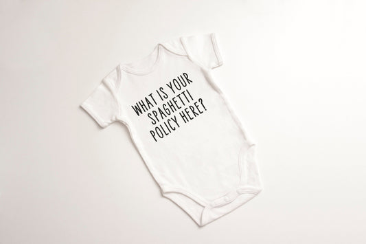 Always Sunny in Philadelphia funny Gerber ONESIE® brand What is Your Spaghetti Policy Here? baby shower gift Charlie bodysuit unisex